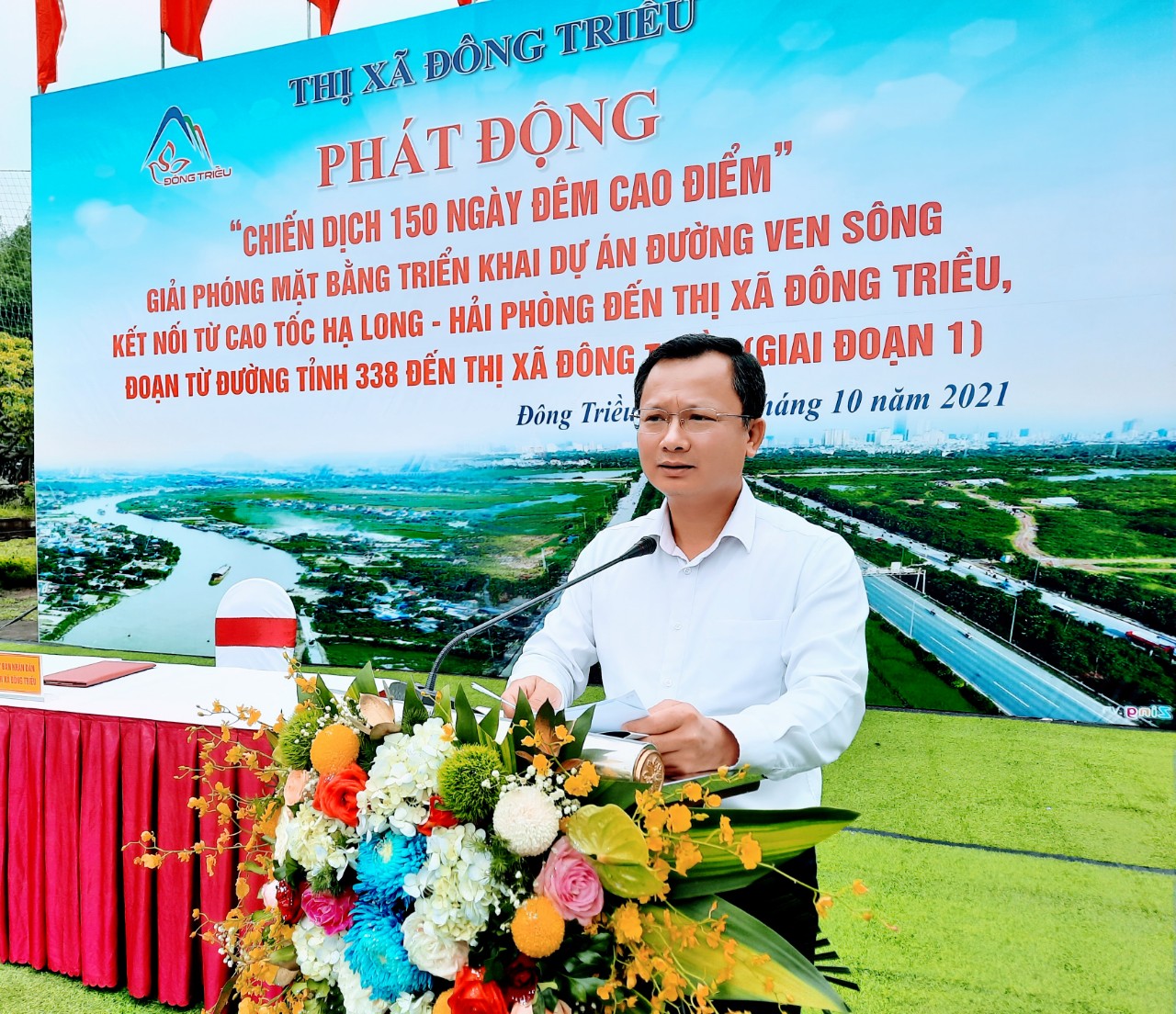 Tại lễ phát động “Chiến dịch cao điểm 150 ngày đêm” GPMB đường ven sông của TP Uông Bí và TX Đông Triều, đồng chí Cao Tường Huy, Phó Chủ tịch Thường trực UBND tỉnh đã đánh giá cao sự quyết tâm của TP Uông Bí và TX Đông Triều, sự đồng thuận, hỗ trợ của nhân dân. Đồng chí nhấn mạnh: Với tư duy, khát vọng đổi mới của Quảng Ninh, thời gian qua tỉnh đã có nhiều ý tưởng phát triển đột phá, dành sự quan tâm lớn cho đầu tư phát triển hệ thống kết cấu hạ tầng kinh tế - xã hội; nhiều công trình dự án giao thông có quy mô lớn, quan trọng trên địa bàn đã được đầu tư xây dựng, từng bước hiện đại hóa hệ thống hạ tầng giao thông theo quy hoạch, góp phần quan trọng thúc đẩy phát triển liên kết vùng để phát triển kinh tế - xã hội.