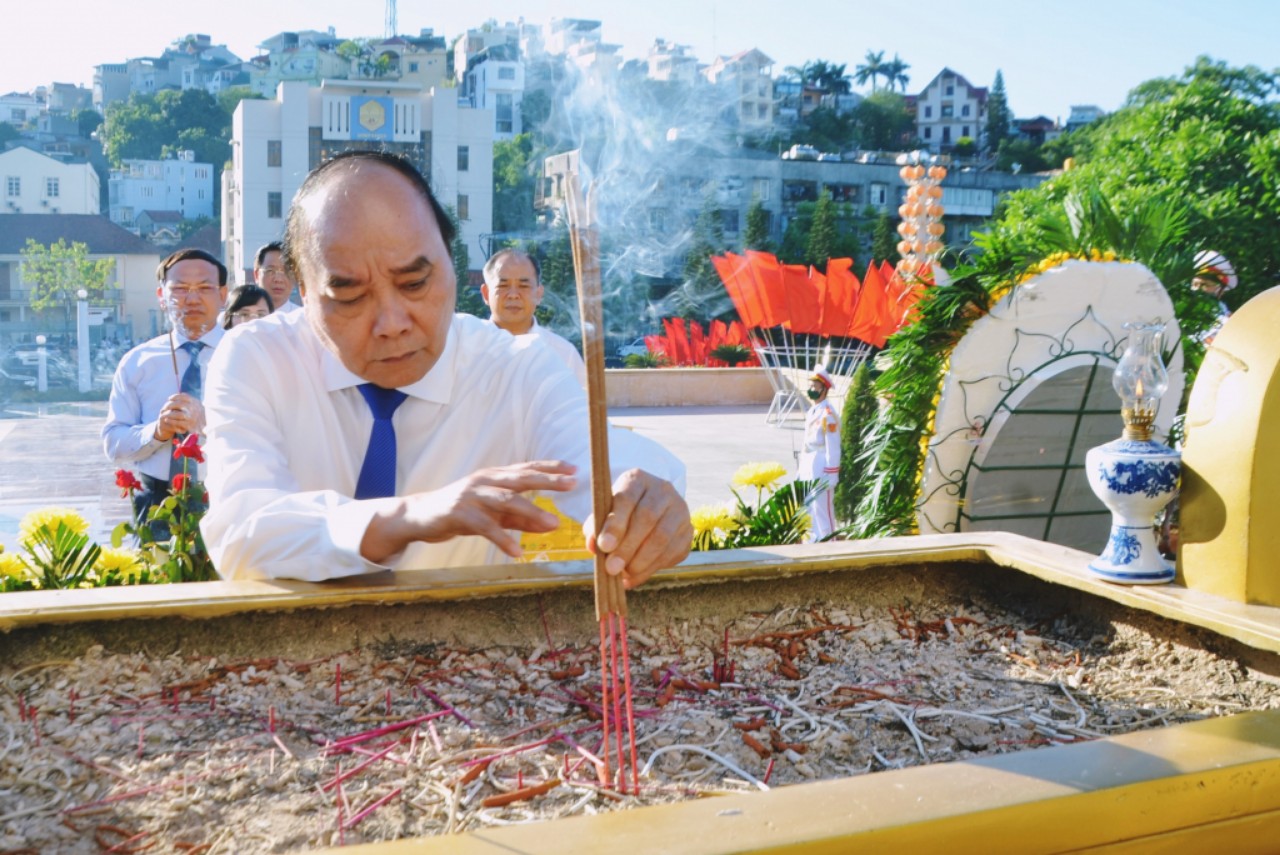 Chủ tịch nước Nguyễn Xuân Phúc dâng hương tưởng niệm đồng chí Vũ Văn Hiếu, Bí thư Đặc khu ủy đầu tiên Khu mỏ Quảng Ninh.