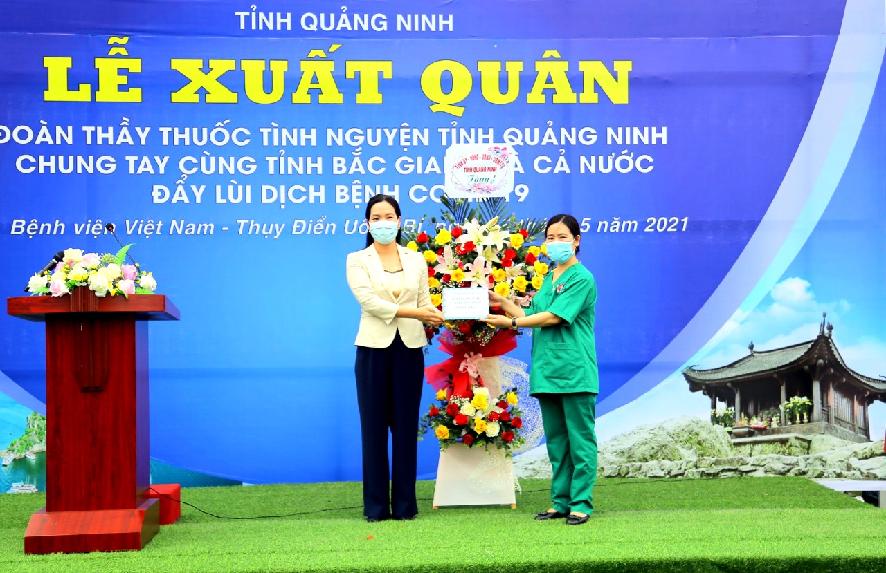 Phát biểu tại buổi lễ, đồng chí Lê Ánh Dương, Phó Bí thư Tỉnh ủy, Chủ tịch UBND tỉnh Bắc Giang khẳng định: Sự chi viện, hỗ trợ tỉnh Quảng Ninh về nhân lực, vật tư, trang thiết bị, kinh phí, phục vụ công tác chống dịch đối với Bắc Giang lúc này có ý nghĩa vô cùng quan trọng và cấp thiết. Với kinh nghiệm chống dịch hiệu quả, đội ngũ thầy thuốc, y bác sĩ, nhân viên y tế của Bệnh viện Việt Nam Thụy Điển chắc chắn sẽ chia sẻ, đóng góp những phương pháp, cách thức chống dịch hiệu quả nhất cho tỉnh Bắc Giang. Đảng bộ, chính quyền và nhân dân tỉnh Bắc Giang vô cùng cảm động, luôn trân trọng và ghi nhớ tình cảm, nghĩa cử cao đẹp mà Đảng bộ, chính quyền, các thầy thuốc, y bác sĩ, nhân viên y tế, doanh nghiệp và nhân dân tỉnh Quảng Ninh dành cho chúng tôi trong thời điểm quan trọng này. Sự trợ giúp kịp thời của Quảng Ninh chính là nguồn cổ vũ, động viên to lớn giúp Bắc Giang chiến thắng dịch bệnh trong thời gian sớm nhất.