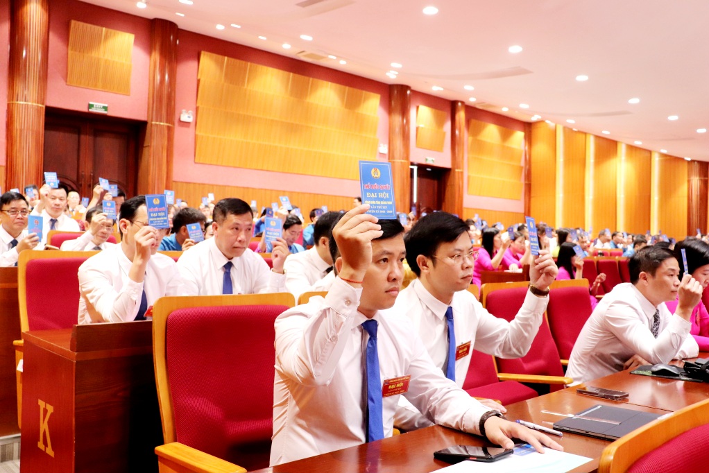 Tại đại hội, đại biểu thống nhất thông qua các mục tiêu, nhiệm vụ và các giải pháp chủ yếu của công đoàn trong nhiệm kỳ 2023-2028 với chỉ tiêu: hàng năm 100% chủ tịch công đoàn cơ sở bầu mới được đào tạo, bồi dưỡng với hình thức phù hợp; 85% công đoàn cấp trên trực tiếp cơ sở, 85% trở lên công đoàn cơ sở khu vực nhà nước và 65% trở lên công đoàn cơ sở ngoài khu vực nhà nước xếp loại hoàn thành tốt nhiệm vụ; ít nhất 80% công đoàn cơ sở doanh nghiệp ngoài khu vực nhà nước tham gia với người sử dụng lao động ban hành, thực hiện quy chế dân chủ ở cơ sở; 98% trở lên số cơ quan nhà nước, đơn vị sự nghiệp công lập đủ điều kiện tổ chức hội nghị cán bộ, công chức, viên chức, người lao động; 100% doanh nghiệp khu vực nhà nước và 70% đơn vị, doanh nghiệp khu vực ngoài nhà nước đủ điều kiện có công đoàn cơ sở tổ chức hội nghị người lao động và đối thoại hàng năm; bình quân mỗi công đoàn cơ sở giới thiệu ít nhất 1 đoàn viên ưu tú cho Đảng xem xét, bồi dưỡng kết nạp; 90% trở lên công đoàn cơ sở doanh nghiệp ngoài khu vực nhà nước có đủ điều kiện thành lập Ban nữ công quần chúng theo quy định của Điều lệ Công đoàn Việt Nam; 100% công đoàn cấp trên trực tiếp cơ sở tổ chức thực hiện việc kiểm tra tài chính cùng cấp đúng quy định; ít nhất 10% công đoàn cơ sở doanh nghiệp được công đoàn cấp trên kiểm tra, giám sát tài chính; 85% trở lên số vụ việc của đoàn viên có nhu cầu tư vấn, giải quyết tranh chấp lao động có đại diện công đoàn tham gia hoặc được công đoàn hỗ trợ…
