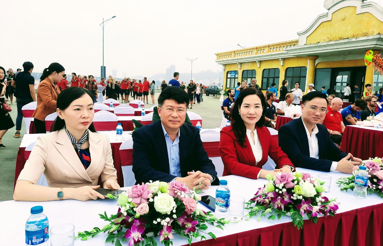 Lãnh đạo sở Du lịch và UBND thành phố Hạ Long tặng hoa thủy thủ các Đội đua thuyền buồm