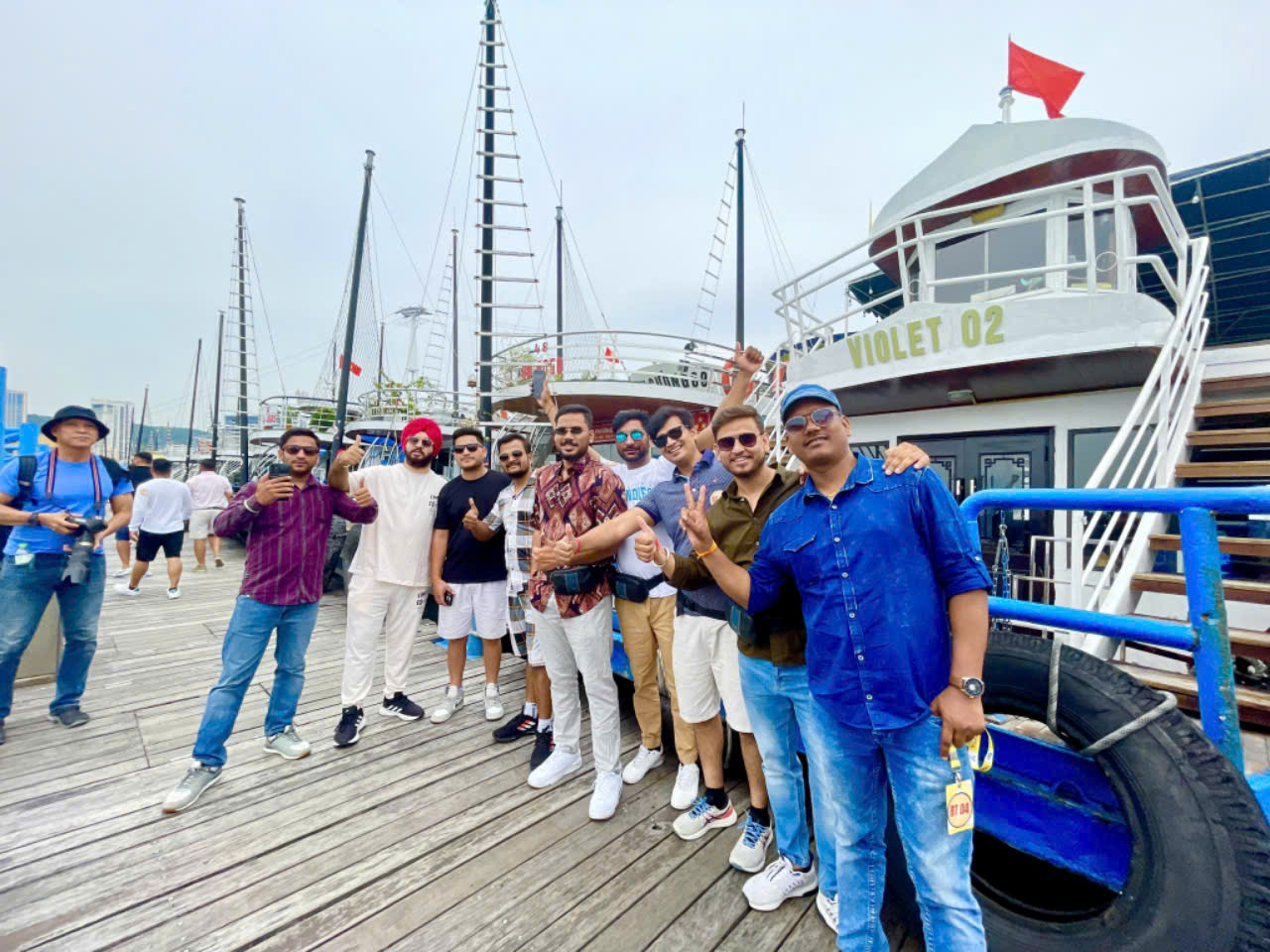 Du khách Ấn Độ chụp ảnh check-in tại cảng tàu khách trước khi lên tàu tham quan vịnh Hạ Long.