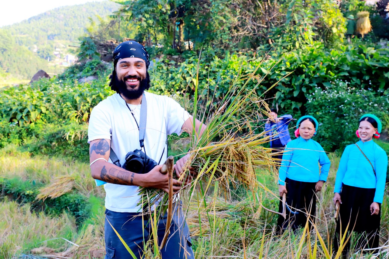 Du khách trải nghiệm gặt lúa tại bản Ngàn Pạt, xã Lục Hồn, Bình Liêu