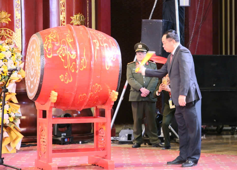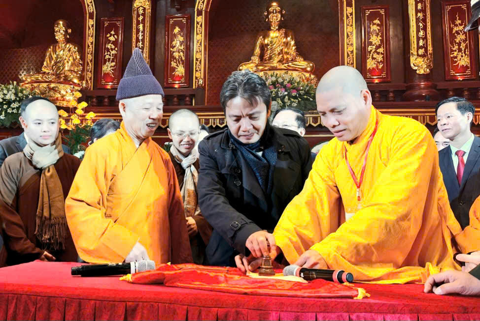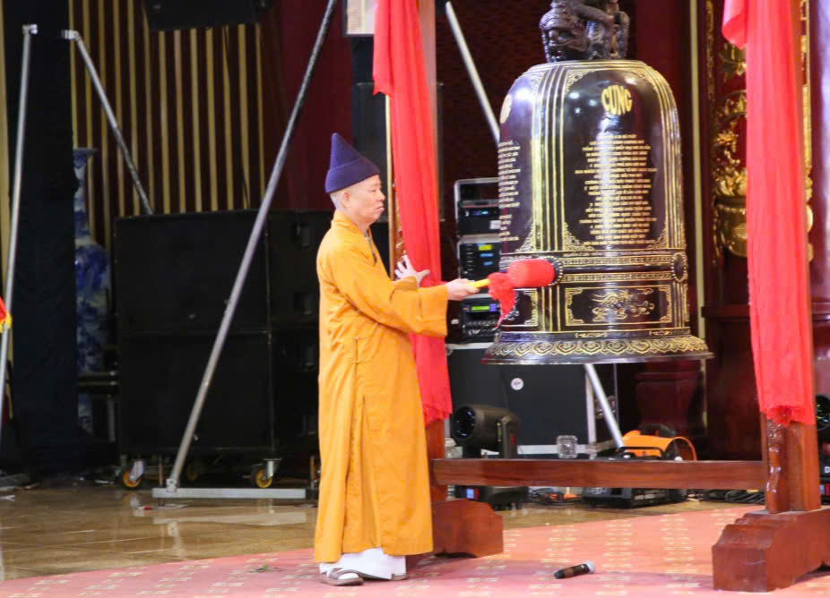 Hòa Thượng Thích Thanh Quyết, Phó Chủ tịch Hội đồng Trị sự Trung ương Giáo hội Phật giáo Việt Nam, Trưởng Ban Trị sự Giáo hội Phật giáo tỉnh Quảng Ninh thỉnh chuông khai hội.
