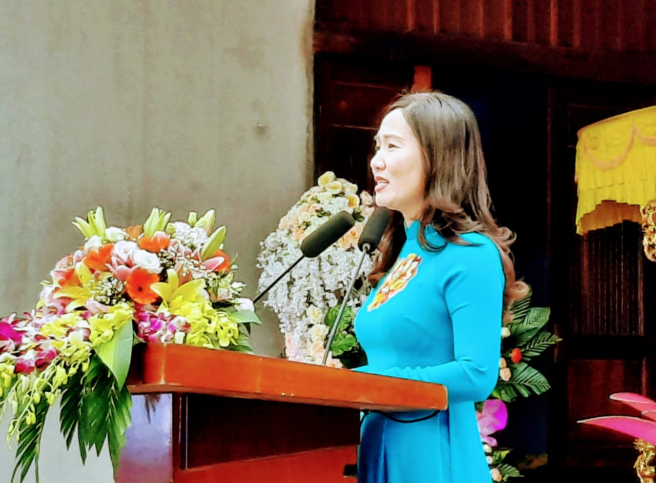 Đồng chí Nguyễn Thị Hạnh, Tỉnh ủy viên, Phó Chủ tịch Ủy ban nhân dân tỉnh Quảng Ninh phát biểu tại buổi lễ