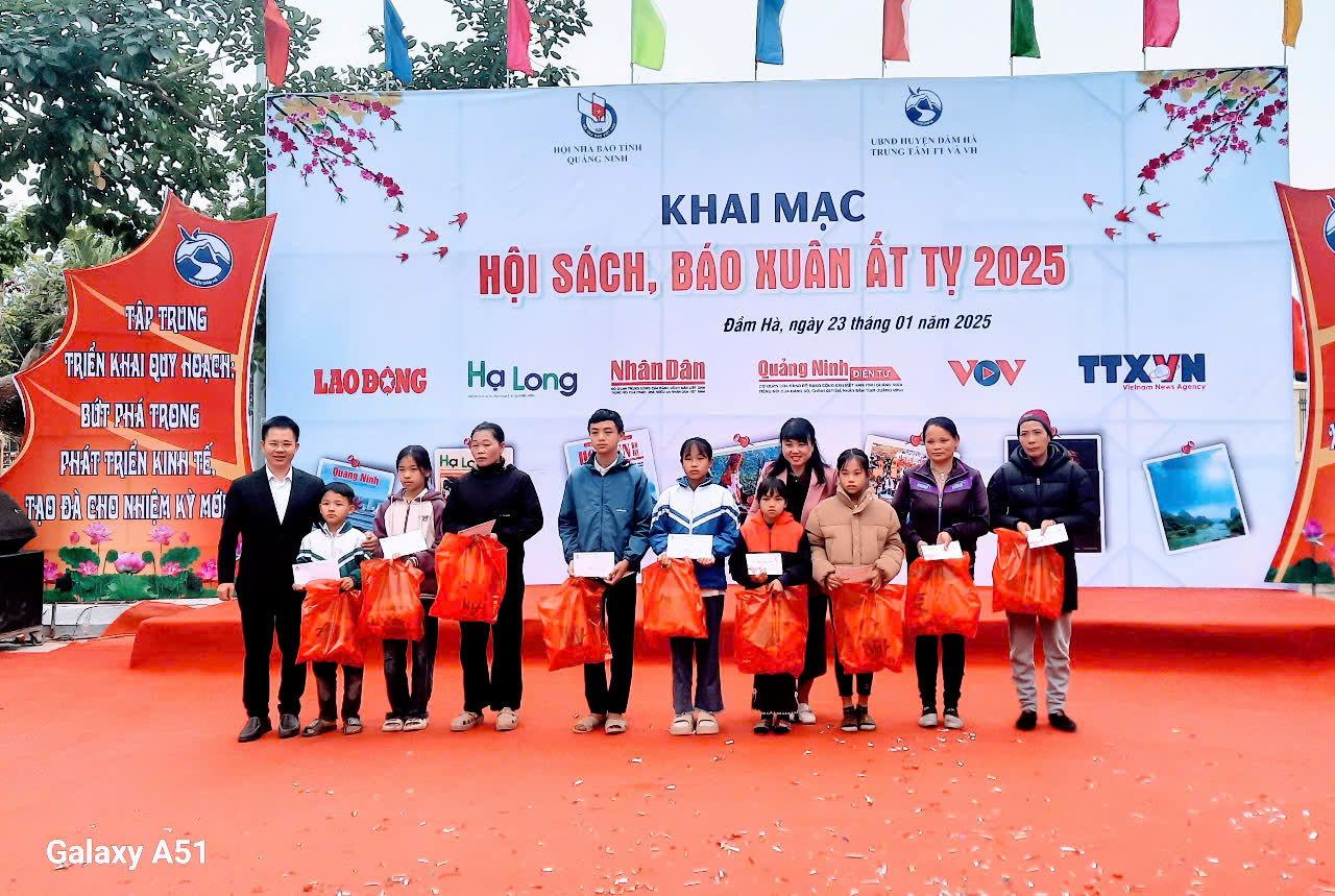 Nhân dịp chào đón Xuân Ất Tỵ 2025, cùng với hoạt động của Hội sách, báo Xuân, Hội Nhà báo tỉnh Quảng Ninh còn phối hợp với các nhà hảo tâm trao tặng nhiều suất quà Tết, máy tính cho các tổ chức, cá nhân có hoàn cảnh khó khăn tại huyện Đầm Hà và TP Đông Triều, thể hiện trách nhiệm xã hội của những người làm báo, cùng tinh thần đoàn kết và sẻ chia tình yêu thương với những người còn gặp khó khăn trong cuộc sống.