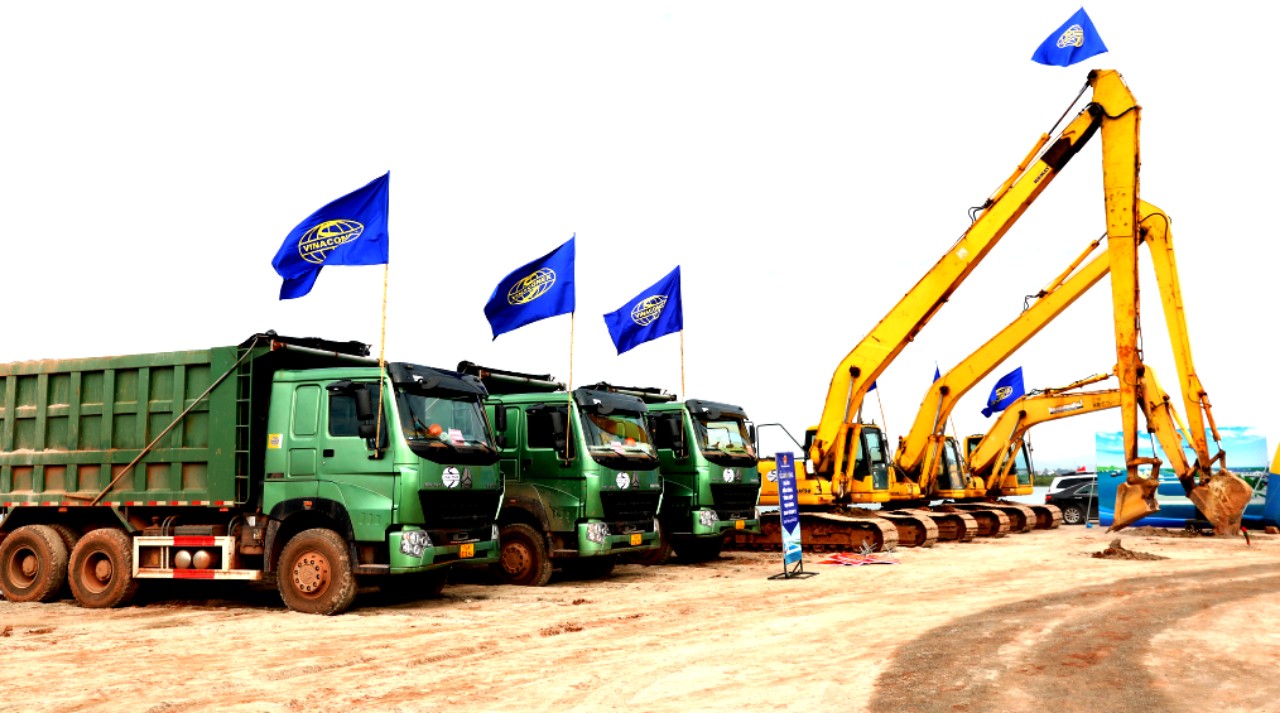 Phương tiện, máy móc đã sẵn sàng thi công xây dựng công trình.