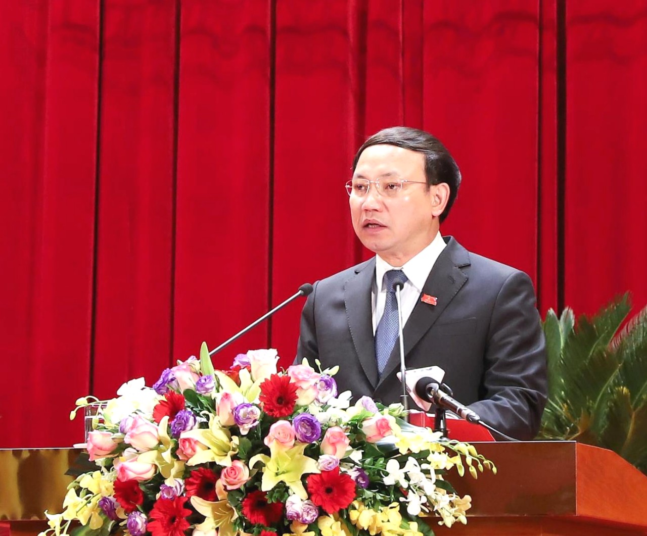 Đồng chí Nguyễn Xuân Ký, Ủy viên BCH Trung ương Đảng, Bí thư Tỉnh ủy, Chủ tịch HĐND tỉnh, phát biểu tại kỳ họp
