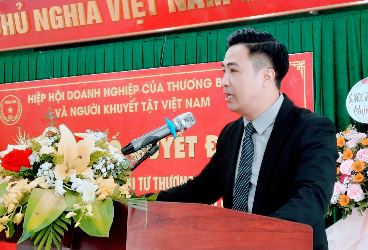 Đồng chí Vũ Quang Trực, Phó Giám đốc Sở Lao động Thương binh và Xã hội tỉnh phát biểu tại Lễ công bố quyết định