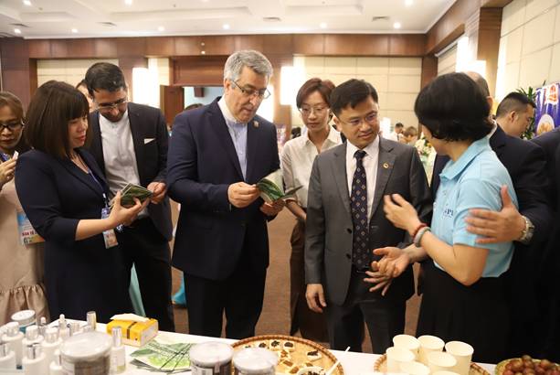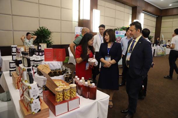 Các đại biểu đến thăm các gian hàng đáp ứng nhu cầu, sở thích của khách du lịch Hồi giáo, sản phẩm OCOP Quảng Ninh.