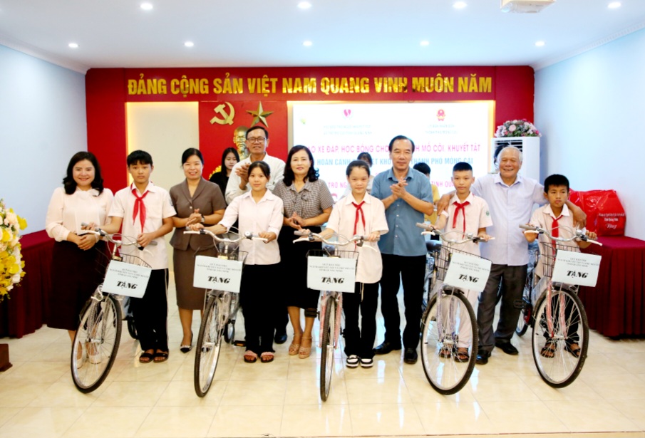 Quỹ Bảo trợ Người khuyết tật và Trẻ mồ côi tỉnh tặng xe đạp cho học sinh có hoàn cảnh đặc biệt khó khăn của TP Móng Cái.