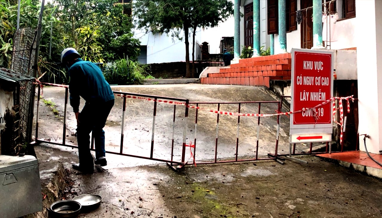 Lực lượng chức năng Tp phong tỏa, cách ly khu vực ngôi nhà GĐ anh Võ Văn Nghĩa tạm trú tại khu 9, phường Hồng Hải