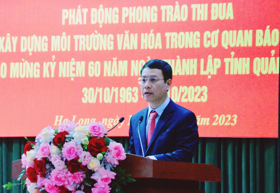 Đồng thời, tổ chức phong trào thi đua đảm bảo thật hiệu quả, thiết thực, gắn kết chặt chẽ với phong trào thi đua “Xây dựng môi trường văn hóa trong các cơ quan báo chí” nâng cao hiệu quả tuyên truyền, giáo dục chính trị tư tưởng, giáo dục truyền thống cho cán bộ, đảng viên, nhân dân, nhất là thế hệ trẻ về đất nước, Đảng, Bác Hồ và sự nghiệp đổi mới, cũng như lịch sử, truyền thống hào hùng, tiềm lực, vị thế và uy tín của tỉnh Quảng Ninh qua 60 năm xây dựng và phát triển.