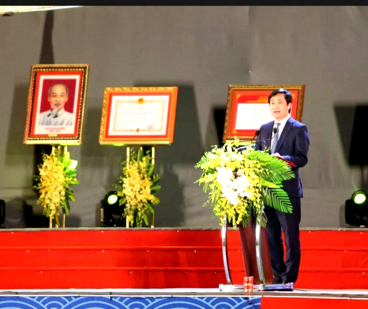 Phó Bí thư Tỉnh ủy, Chủ tịch UBND tỉnh Quảng Ninh Nguyễn Tường Văn, phát biểu tại buổi lễ đón nhận Huân chương Độc lập hạng Nhì và công bố Quyết định thành lập KKT ven biển Quảng Yên; công nhận TX Quảng Yên hoàn thành xây dựng nông thôn mới (NTM); công nhận TX Quảng Yên là Đô thị loại III.
