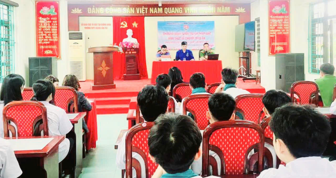 Công an TP Uông Bí tuyên truyền, phổ biến kiến thức phòng, chống ma túy cho học sinh Trường THPT Hoàng Văn Thụ (Ảnh: Mai Hương (Trung tâm TT-VH Uông Bí)