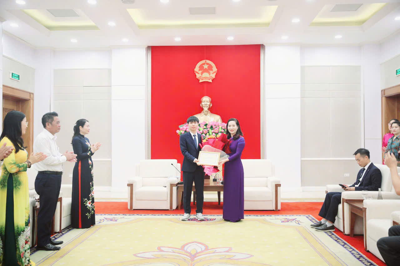 Phát biểu tại buổi lễ tuyên dương, đồng chí Nguyễn Thị Hạnh, Phó Chủ tịch UBND tỉnh biểu dương và chúc mừng thành tích nổi bật của học sinh Ninh Quang Thắng cùng những đóng góp âm thầm, tận tụy của các thầy, cô giáo trong công tác đào tạo và giảng dạy. Đây là kết quả đáng ghi nhận, thể hiện tinh thần nỗ lực không ngừng nghỉ, trí tuệ và bản lĩnh của thế hệ trẻ Quảng Ninh trong kỷ nguyên đổi mới sáng tạo và chuyển đổi số.