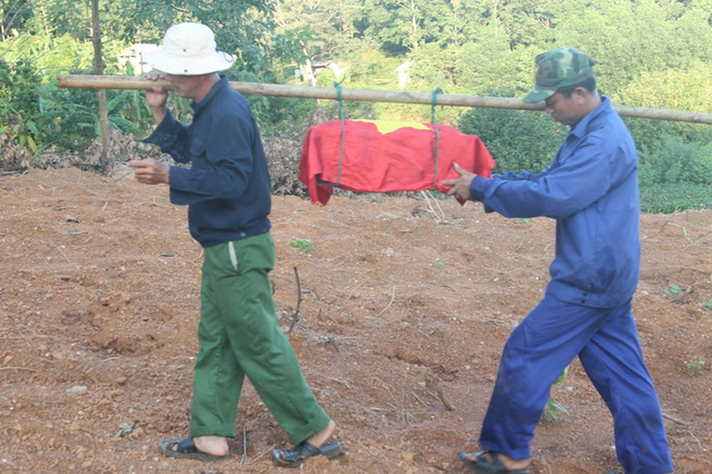 Đưa các hài cốt về khu vực chăm sóc, hương khói để chờ an táng (Ảnh: B.H)