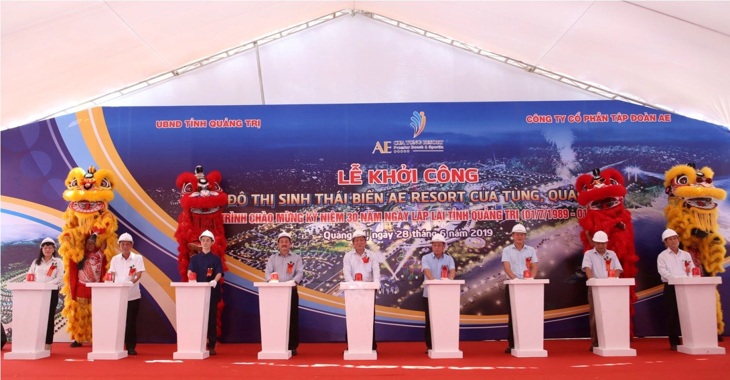 Ngày 28/6 vừa qua , Công ty Cổ phần Tập đoàn AE phối hợp với UBND tỉnh Quảng Trị tổ chức lễ khởi công Khu đô thị sinh thái biển AE Resort Cửa Tùng. Dự buổi lễ có đồng chí Nguyễn Văn Hùng, UVTW Đảng, Bí thư Tỉnh ủy, Chủ tịch HĐND tỉnh Quảng Trị; đồng chí Nguyễn Đức Dũng, UVBTV Tỉnh ủy, Phó Chủ tịch Thường trực HĐND tỉnh; đồng chí Nguyễn Quân Chính, Phó Chủ tịch UBND tỉnh. Về phía Công ty cổ phần Tập đoàn AE có ông Dương Hồng Tuyển, Phó Chủ tịch Hội đồng quản trị công ty; ông Dương Hồng Thủy, Tổng Giám đốc Công ty cổ phần Tập đoàn AE.