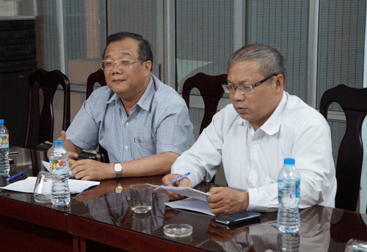 Ông Hoàng Tuấn Anh (bên phải) báo cáo với nguyên Thứ trưởng Tí và Phó Cục trưởng Nguyễn Duy Kiên.