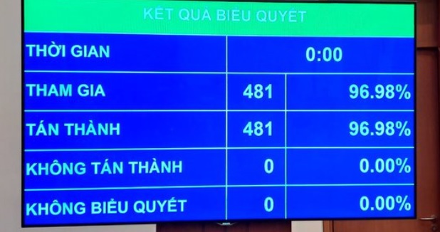 Với 100% số phiếu tán thành, Quốc hội đã thống nhất phê chuẩn bổ nhiệm 2 tân Phó Thủ tướng Chính phủ. (Ảnh: VGP)