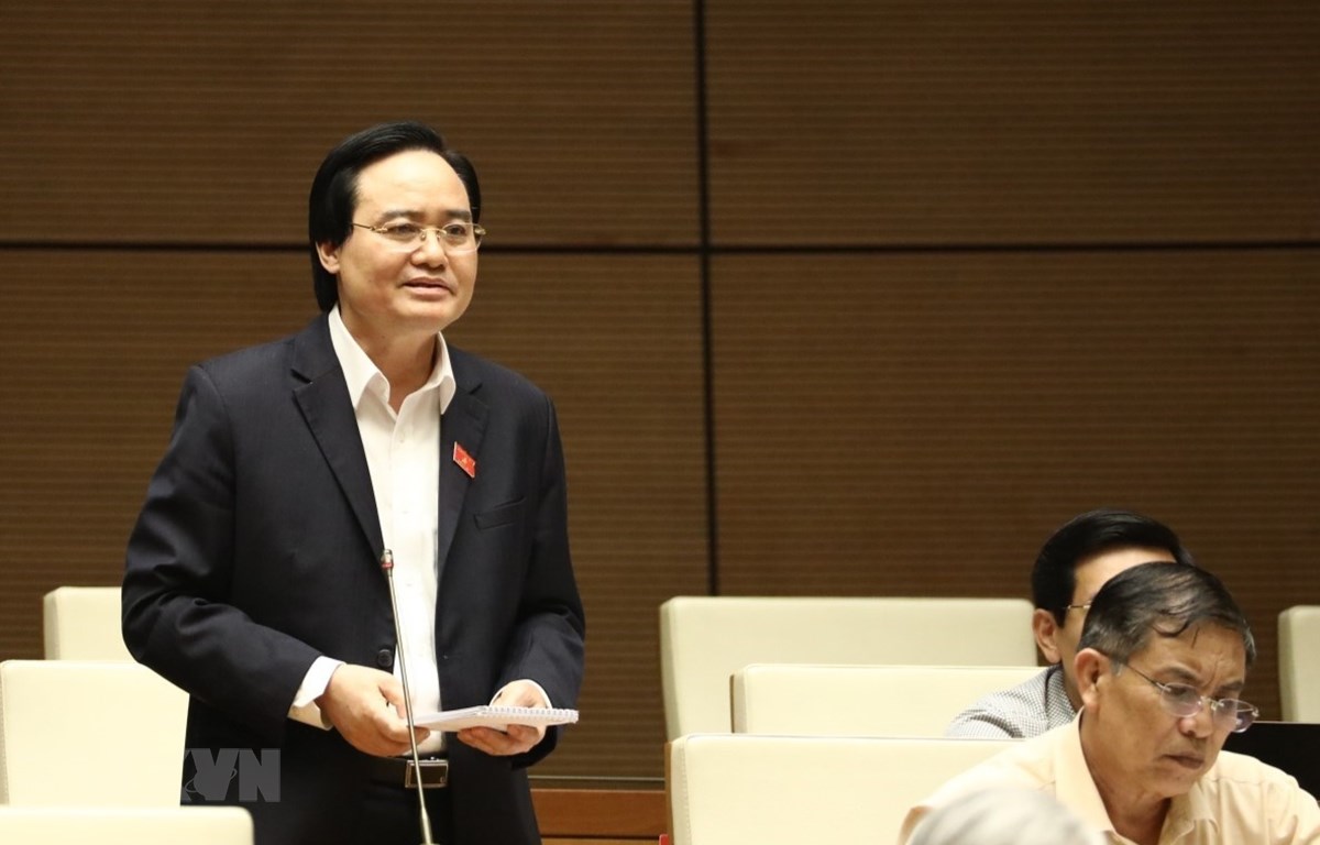 | Bộ trưởng Bộ Giáo dục và Đào tạo Phùng Xuân Nhạ phát biểu làm rõ thêm những nội dung thuộc nhóm vấn đề thứ ba. (Ảnh: Văn Điệp/TTXVN) |