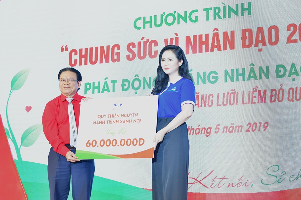 | Lãnh đạo Hội Chữ thập đỏ TP Hà Nội tiếp nhận ủng hộ của Quỹ Hành Trình Xanh NCB |