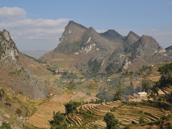 | Những "bức tường" núi đá sừng sững bao bọc, nuôi sống con người. (Ảnh: Thanh Hà/TTXVN) |
