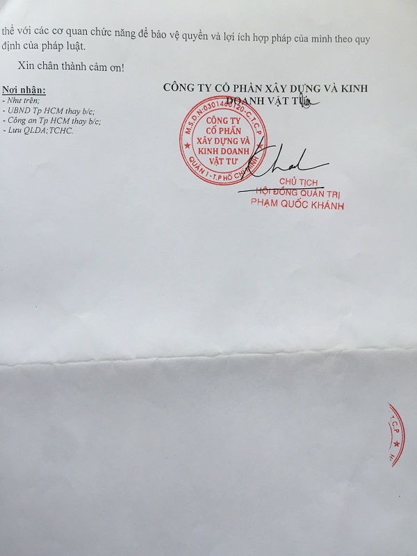 Tại Công văn số 27/2017/CV-QLDA-PL trả lời kiến nghị của các hộ dân về DA chung cư cao tầng Phú Long, Công ty C&T cho rằng ông, bà đang viện dẫn nội dung tại Điều 3, Mục 4 Quyết định số 648/QĐ-UBND ngày 19/2/2016 của UBND TP.Hồ Chí Minh, về việc cho phép chuyển nhượng DA giữa Công ty C&T và Công ty Phúc Yên: “ chịu trách nhiệm về nội dung đã cam kết ngày 28/7/2015 trong việc giải quyết tranh chấp phát sinh với Công ty TNHH Bảo Ngọc Tú hoặc bên thứ 3 có liên quan đến việc chuyển nhượng DA này (nếu có) theo quy định; không ảnh hưởng đến việc tiếp nhận đầu tư xây dựng DA của Công ty Phúc Yên”. Tuy nhiên, về nội dung này và khiếu nại (KN) của quý ông bà, Công ty C&T làm rõ như sau:
