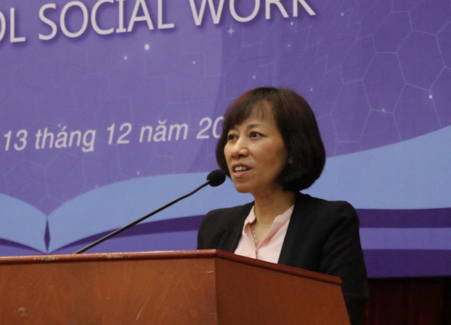 Báo cáo tại hội nghị, TS Pauline Memeduma đến từ Quỹ nhi đồng Liên hợp quốc (UNICEF) đã trình bày báo cáo “Child protection social work education - the need for a strategic education/training response in Vietnam” trình bày quan điểm về nguyên tắc vàng cho nhân viên xã hội là năng lực của nhân viên xã hội phải tỷ lệ thuận với nhu cầu của xã hội.