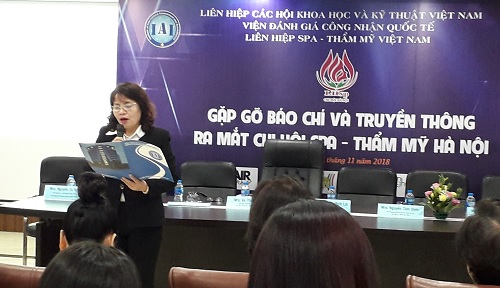 Cơ cấu tổ chức Chi hội Spa Thẩm mỹ Hà Nội sẽ gồm 1 Chủ tịch, 5 Phó Chủ tịch, 1 Tổng thư ký trong đó Ban đào tạo đứng đầu là Phó Chủ tịch là 7 Trưởng Ban các lĩnh vực làm đẹp thẩm mỹ như spa da, phun thêu thẩm mỹ, trang điểm, đông y, Nail, nối mi và tóc.