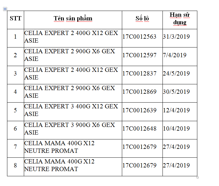 Trong thời gian chờ kết quả kiểm nghiệm, Cục An toàn Thực phẩm đề nghị các tổ chức, cá nhân tạm thời ngừng tiêu thụ và sử dụng các sản phẩm có tên và số lô dưới đây: