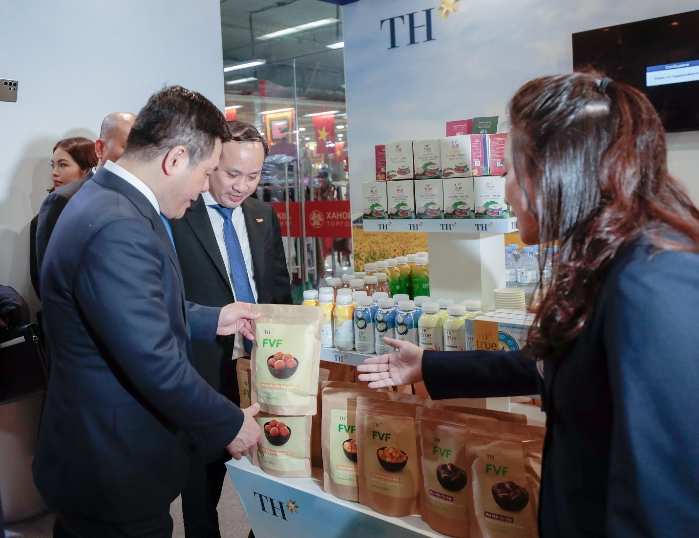Cùng với đó, các sản phẩm khác như trà thảo dược TH true HERBAL, thực phẩm bổ sung hoàn toàn từ thiên nhiên TH FVF (long nhãn sấy dẻo, hạt mắc ca sấy…) đã thu hút sự quan tâm đặc biệt của khách hàng và đối tác tại Nga. Những sản phẩm này không chỉ góp phần quảng bá cho tinh hoa thảo dược Việt Nam mà còn giúp lan tỏa chế độ dinh dưỡng lành mạnh, nâng cao sức khỏe cho người tiêu dùng.