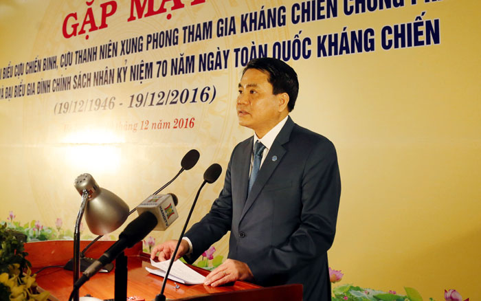 Phát biểu tại buổi gặp mặt, ông Nguyễn Đức Chung - Chủ tịch UBND thành phố ôn lại những chiến công của quân và dân Hà Nội trong cuộc chiến đấu cầm chân giặc Pháp “60 ngày đêm” tháng 12/1946. Chủ tịch UBND thành phố nhấn mạnh: Thủ đô Hà Nội ngày ấy “mỗi ngôi nhà là một pháo đài, mỗi đường phố là một chiến tuyến, mỗi người dân là một chiến sĩ”, nhân dân Thủ đô không quản ngại hy sinh, gian khổ ngày đêm lập những chiến lũy trên đường phố Hà Nội để ngăn cản bước tiến của quân thù. Mặc dù, lực lượng chênh lệch, vũ khí thô sơ, kẻ địch tinh nhuệ được trang bị vũ khí hiện đại, nhưng đồng bào và chiến sĩ Thủ đô đã chiến đấu anh dũng, giam chân kẻ thù suốt 60 ngày đêm, tạo điều kiện để Trung ương Đảng, Chính phủ rút về khu an toàn, tản cư được phần lớn nhân dân, đưa một khối lượng lớn máy móc, thiết bị công nghiệp lên chiến khu… góp phần cho cả nước chuẩn bị chủ động bước vào cuộc kháng chiến trường kỳ.