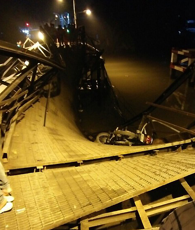 Sống sát bên cầu, anh Việt Anh (40 tuổi) cho biết đã nghe tiếng động của kim loại rất lớn, sau đó là tiếng rầm rầm. "Chạy ra ngoài thì thấy cầu sập, chiếc xe tải chìm xuống sông, một xe máy nằm vắt vẻo trên thành cầu", anh này kể.
