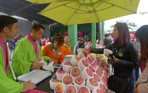 Khách hàng mua táo chính gốc Aomori tại Lễ ra mắt