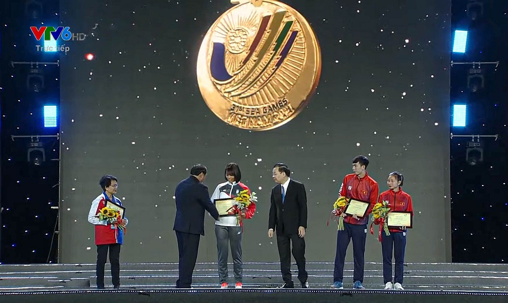 Ông Nguyễn Văn Hùng - Ủy viên Trung ương Đảng, Bộ trưởng Bộ Văn hóa, Thể thao và Du lịch cùng ông Chu Ngọc Anh - Chủ tịch UBND TP Hà Nội Trao thưởng cho 4 gương mặt VĐV xuất sắc nhất SEA Games 31: VĐV Điền kinh Nguyễn Thị Oanh (giành 3 HCV, phá 1 kỷ lục SEA Games), 1 VĐV Điền kinh Thái Lan đạt 4 HCV và phá 1 kỷ lục SEA Games, VĐV Bơi lội Nguyễn Huy Hoàng (5 HCV, phá 2 kỷ lục SEA Games), và 1 VĐV bơi lội của Singapore (6 HCV).