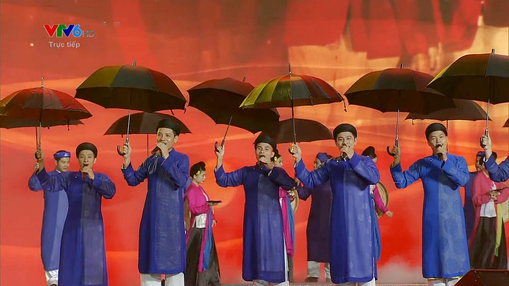 Tiết mục đáp lễ và "giã bạn" của nước chủ nhà Việt Nam với chùm bài hát Quan họ Bắc Ninh thể hiện qua các làn điệu: Mời trầu, Giã bạn và Người ơi người ở đừng về.