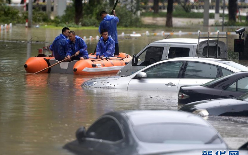 | Nước ngập sâu tại thành phố Ôn Lĩnh, tỉnh Chiết Giang. Ảnh Tân Hoa xã. |