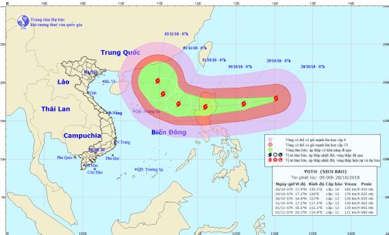 Theo Trung tâm Dự báo Khí tượng Thủy văn Quốc gia, hồi 07 giờ ngày 28/10, vị trí tâm siêu bão ở vào khoảng 17,9 độ Vĩ Bắc; 130,2 độ Kinh Đông, cách đảo Lu-Dông (Phi-líp-pin) khoảng 880km về phía Đông. Sức gió mạnh nhất vùng gần tâm siêu bão mạnh cấp 16 (185-200km/giờ), giật trên cấp 17.