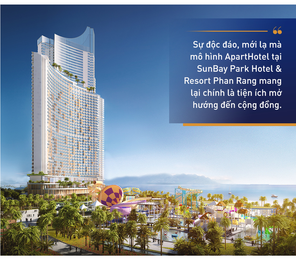 Tiêu biểu cho xu hướng này là dự án SunBay Park Hotel & Resort Phan Rang (Ninh Thuận) của Tập đoàn Crystal Bay và các đối tác. Dự án đã mở đường cho phân khúc mới của bất động sản nghỉ dưỡng khi xác lập vị thế là dự án tổ hợp giải trí nghỉ dưỡng biển đầu tiên tại Việt Nam phát triển mô hình ApartHotel. Điểm nổi bật của mô hình này là thiết lập chuỗi tiện ích tại dự án như một hệ sinh thái lớn thỏa mãn nhu cầu mua sắm, giải trí, thể thao, dịch vụ... của du khách. Khuôn viên dự án hữu công viên nước; nhà hàng ẩm thực; trung tâm thương mại; bể bơi vô cực; phòng gym; khu spa; khu vui chơi, hoạt động trên biển; rạp phim; skybar… đặc biệt còn có Interactive Sea - khu giải trí tương tác biển công nghệ cao đầu tiên tại Việt Nam.