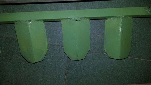 Theo đó, sản phẩm gồm một khung máy bao gồm các thanh hình chữ nhật được gắn với nhau bởi những mối hàn axetilen, hồ quang điện, là phần chịu lực chính của máy cũng là chi tiết trung tâm liên kết các bộ phận khác của máy.