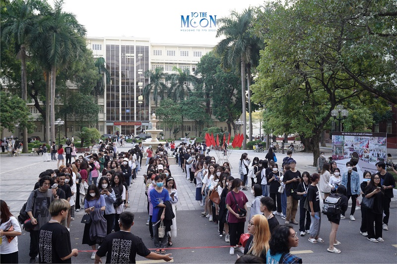 Sinh viên trường Báo xếp hàng từ rất sớm để tham dự đêm nhạc hội FPS - To the Moon.
