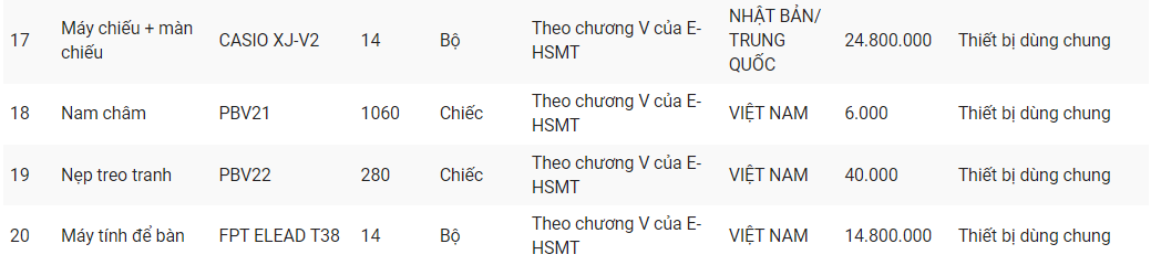 Một so sánh khác, cũng trong năm 2020 tại gói thầu mua sắm thiết bị, Trường Đại học Sư phạm Kỹ thuật Nam Định (tỉnh Nam Định) mua máy chiếu đa năng LCD MC-EX3051, xuất xứ Trung Quốc với giá thấp hơn so với Sở Giáo dục và Đào tạo Thái Nguyên, cụ thể chỉ 16.031.000 đồng/cái, tức thấp hơn đến 7 triệu đồng/cái.