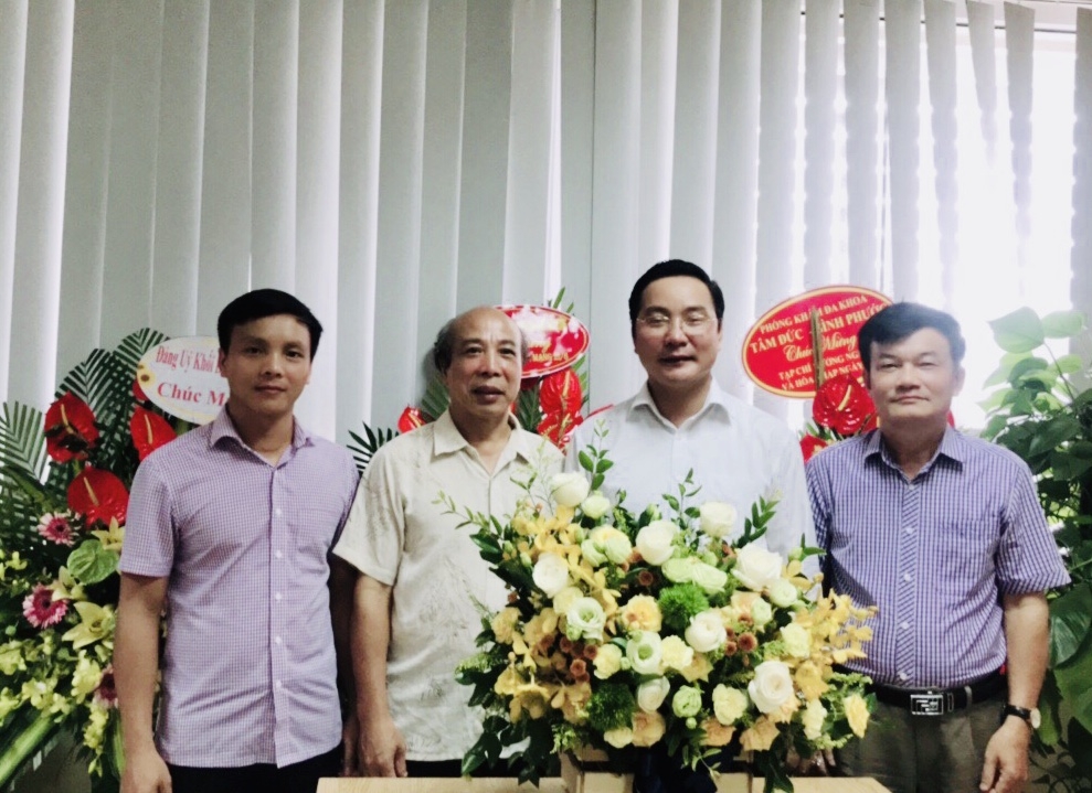 | Đồng chí Nguyễn Trọng Hồng- Bí thư Đảng ủy khối Doanh nghiệp Quận Đống Đa tặng hoa chúc mừng đồng chí Nguyễn Ngọc Quyết- Tổng Biên tập Tạp chí Hướng nghiệp và Hòa nhập nhân ngày Báo chí cách mạng Việt Nam 21/6. |