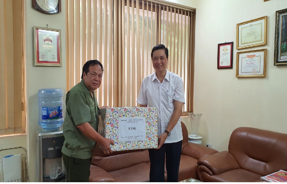 Đồng chí Nguyễn Quốc Khánh - Phó Giám đốc Sở Lao động -Thương binh và Xã hội Hà Nội tặng quà Lãnh đạo công ty cổ phần bao bì 277 Hà Nội.