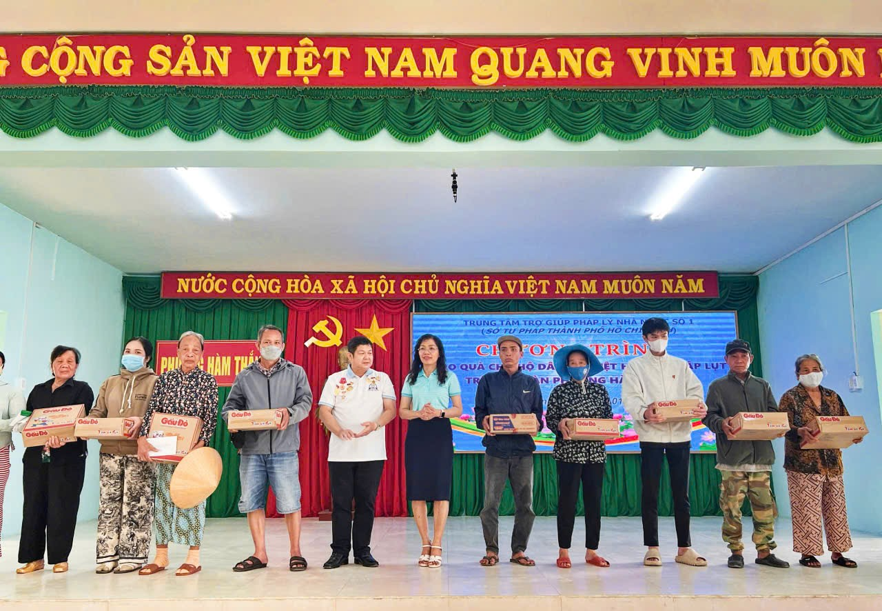 Tại UBND phường Hàm Thắng, Đoàn công tác của Sở Tư pháp TP. Hồ Chí Minh, Trung tâm TGPLNN tỉnh Lâm Đồng, UBND phường Hàm Thắng, đã trao 60 suất quà, mỗi suất, gồm: tiền mặt 1.000.000 đồng, 1 thùng mì tôm, quần áo tự chọn… Đây là những tấm lòng vàng của Chi hội CCB, Trung tâm TGPLNN số 1 TP. Hồ Chí Minh và Luật sư thực hiện trợ giúp pháp lý TP. Hồ Chí Minh, đã vượt hàng trăm cây số, mang theo tình yêu thương đong đầy đến với các hộ gia đình nghèo, cận nghèo, chính sách khó khăn, bị thiệt hại nặng trong đợt lũ vừa qua. Chương trình được tổ chức không chỉ nhằm mục đích hỗ trợ vật chất mà còn là sự động viên tinh thần vô giá đối với các hộ dân, động viên hộ dân khắc phục khó khăn, từng bước ổn định đời sống, bắt tay xây dựng lại kinh tế gia đình.