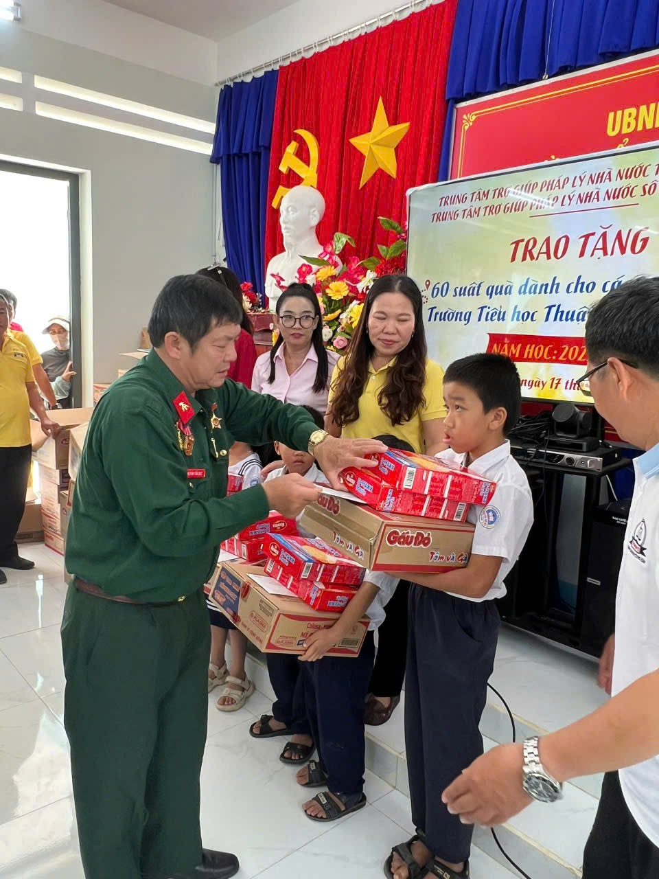 Trước đó, ngày 17/1/2026, Đoàn công tác của Sở Tư pháp TP. Hồ Chí Minh, cùng Trung tâm TGPLNN tỉnh Lâm Đồng, đã trao 60 phần quà cho học sinh Trường Tiểu học Thuận Hoà- Hiệp Hoà, xã Ninh Phước, tỉnh Lâm Đồng, mỗi phần quà, gồm: 1 triệu đồng tiền mặt, 1 thùng mỳ, 2 hộp bánh, hỗ trơ các học sinh có điều kiện học tập tốt.
