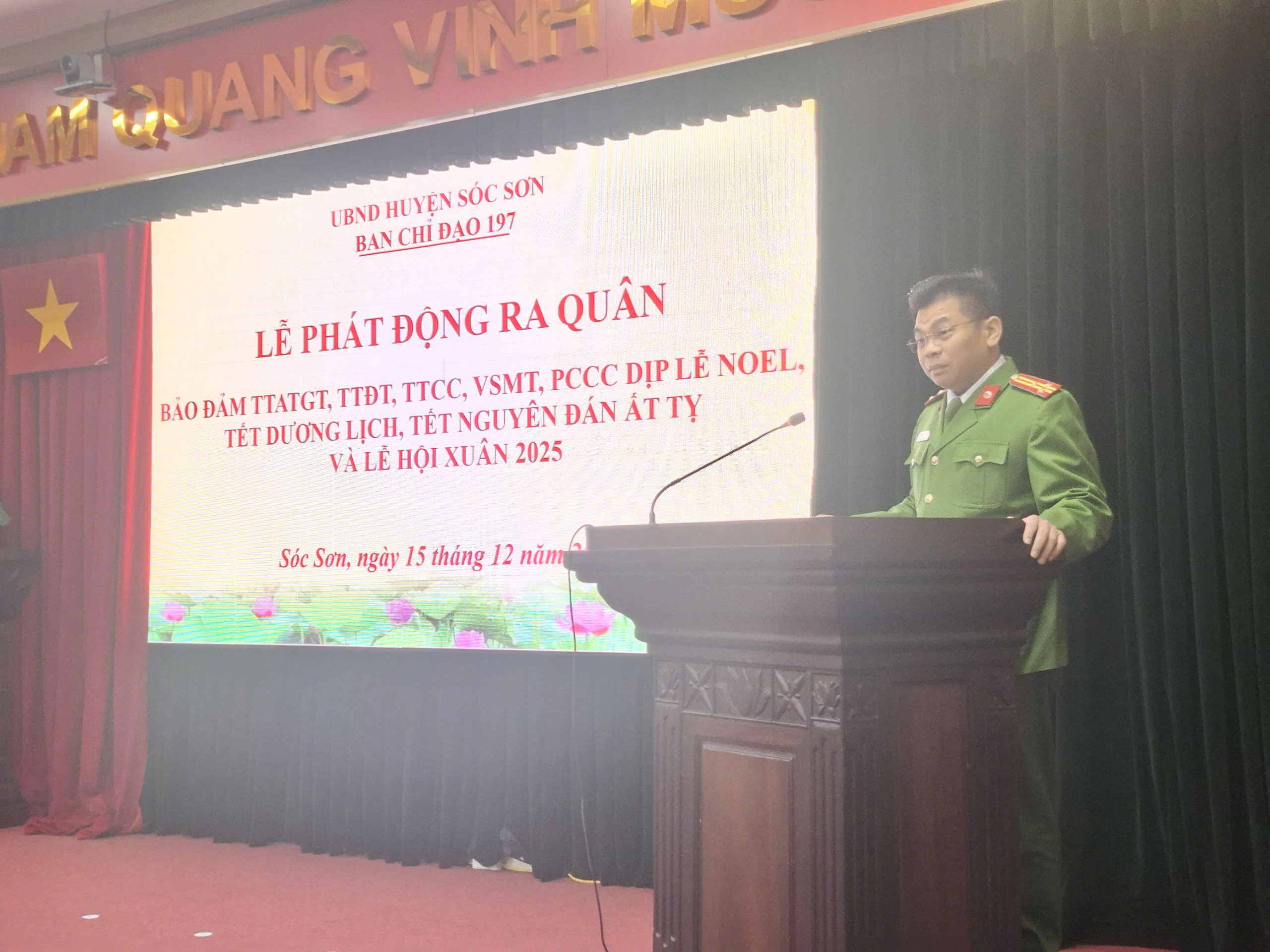 Thực hiện Công văn của UBND thành phố Hà Nội về việc tăng cường đảm bảo trật tự an toàn giao thông, trật tự đô thị, trật tự công cộng, vệ sinh môi trường, an toàn phòng cháy chữa cháy, an toàn thực phẩm dịp Tết Dương lịch, Tết Nguyên đán Ất Tỵ và lễ hội đầu Xuân 2025, Ban chỉ đạo 197 huyện Sóc Sơn đã xây dựng kế hoạch phát động đợt ra quân trên toàn địa bàn huyện.