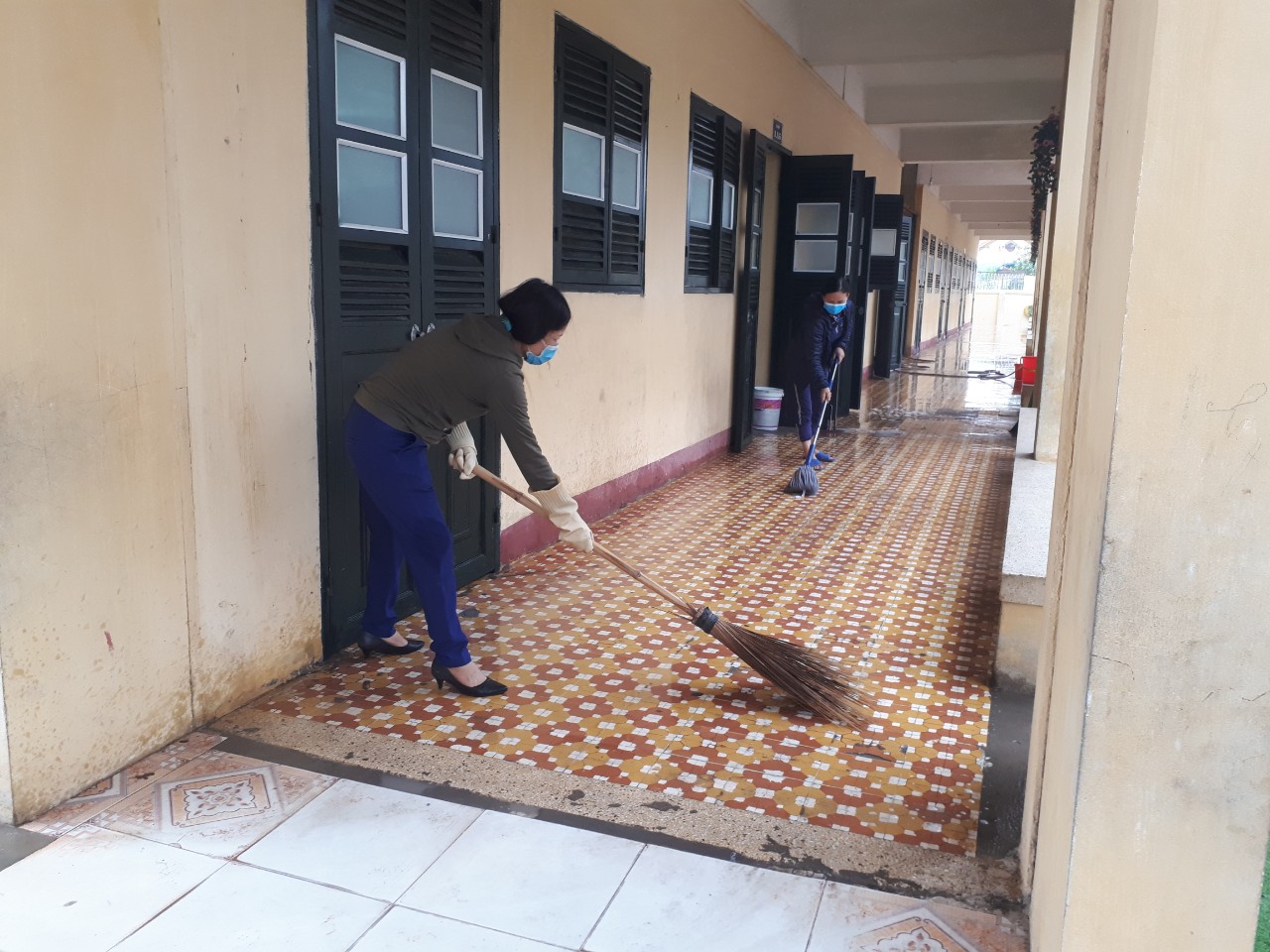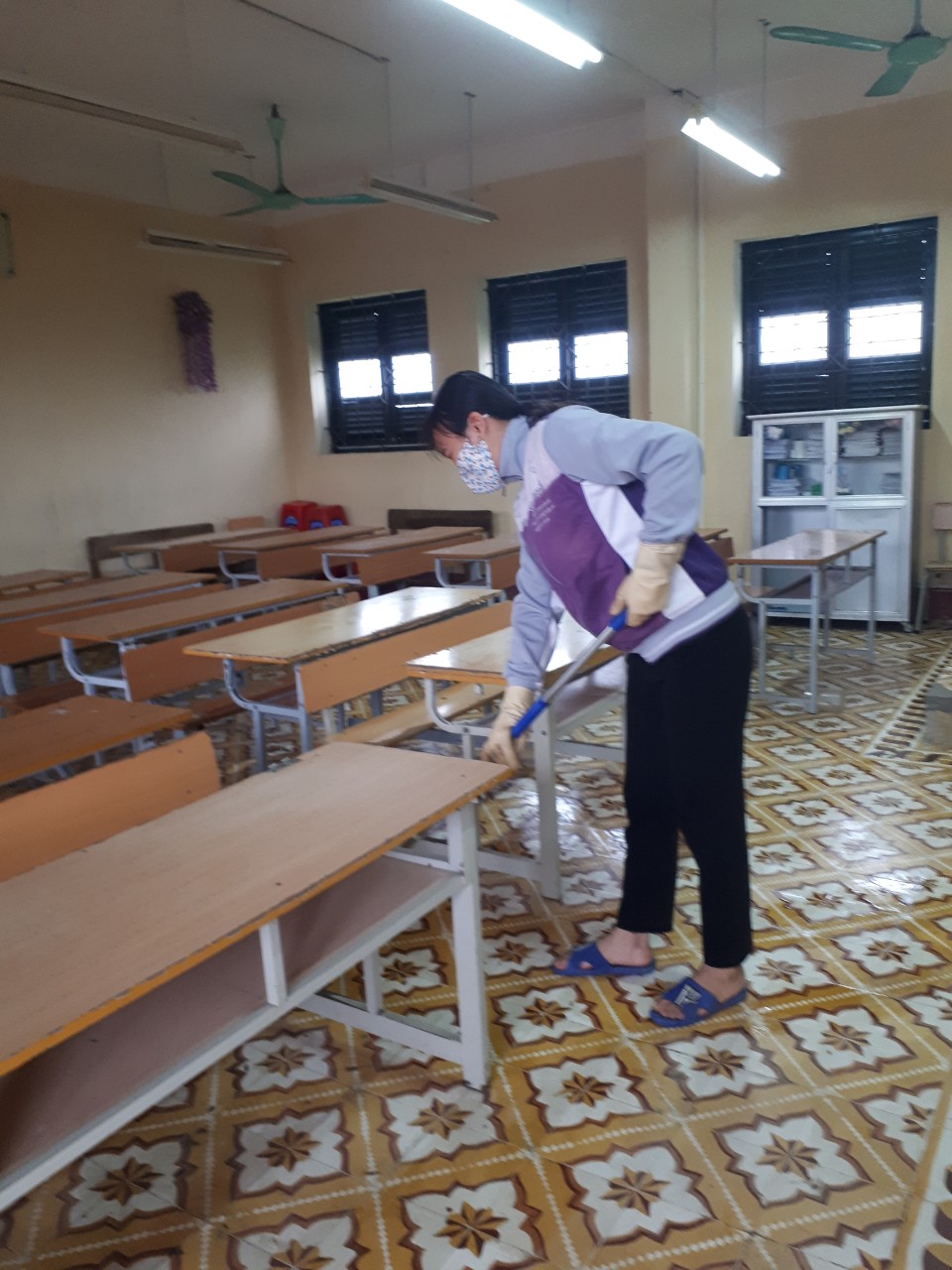 Các trường học ở Sóc Sơn (Hà Nội) phối hợp với hội cha mẹ học sinh vệ sinh sạch sẽ lớp học, môi trường xung quanh để đón học sinh từ lớp 1 đến lớp 6 trở lại trường.