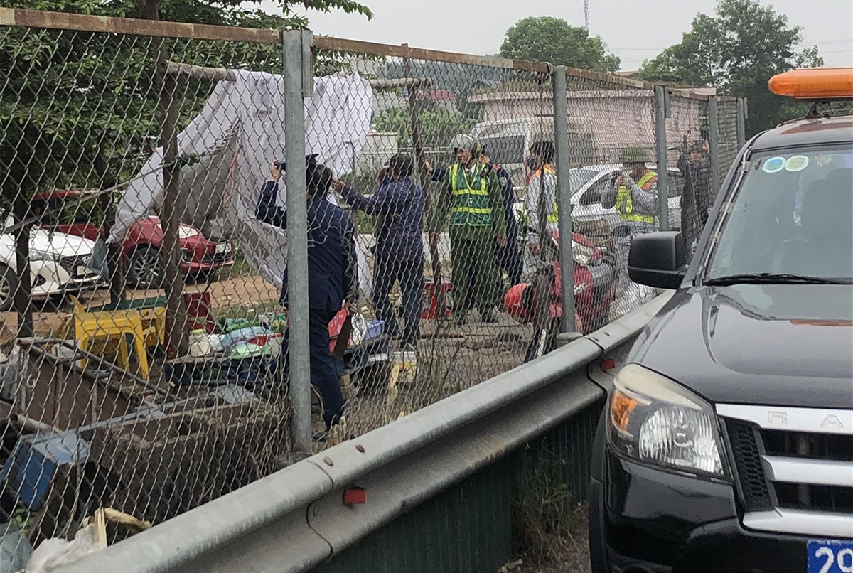 Đội Thanh tra GTVT huyện Sóc Sơn và cơ quan chức năng ra quân xử lý vi phạm hành lang ATGT.
